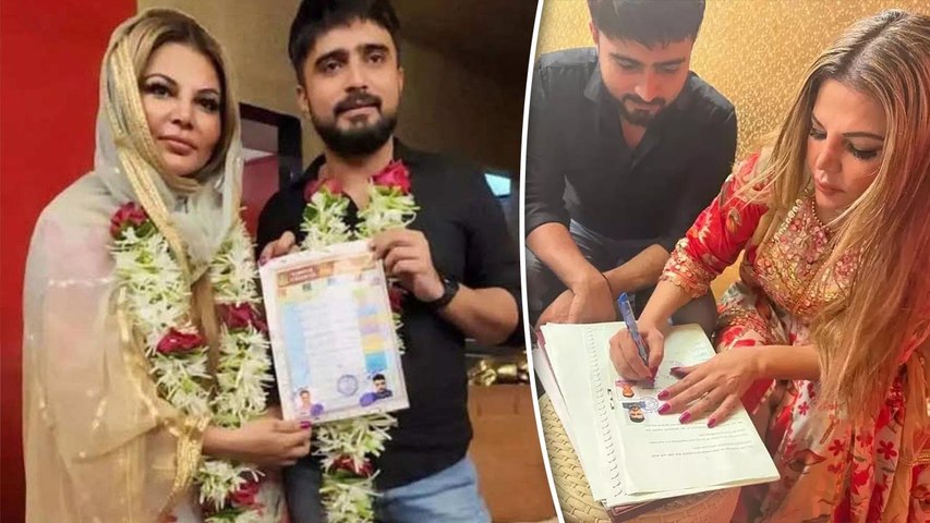 राखी सावंत और आदिल दुर्रानी काफी समय पहले ही अपने रिलेशन को ऑफिशियल कर चुके हैं। वहीं अब खबर सामने आ रही है कि राखी ने एक बार फिर शादी कर ली है और इस बार आदिल को अपना हमसफर बनाया है। दोनों की कुछ तस्वीरें वायरल हो रही हैं, जिसमें वो हाथ में कोर्ट मैरिज का सर्टिफिकेट लिए नजर आ रहे हैं। राखी की ऐसी फोटो देख फैंस भी काफी हैरान हो गए हैं और वो जानना चाहते हैं।