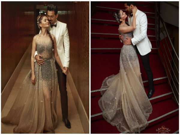 ब्रेडेड हेयरडो और टियारा एक्ट्रेस के लुक में चार चांद लगा रहे थे। लेकिन पार्टी का माहौल तब बना जब रुबीना ने पार्टी में सबके सामने अभिनव को किस कर लिया। जिसका वीडियो सोशल मीडिया पर छाया हुआ है।