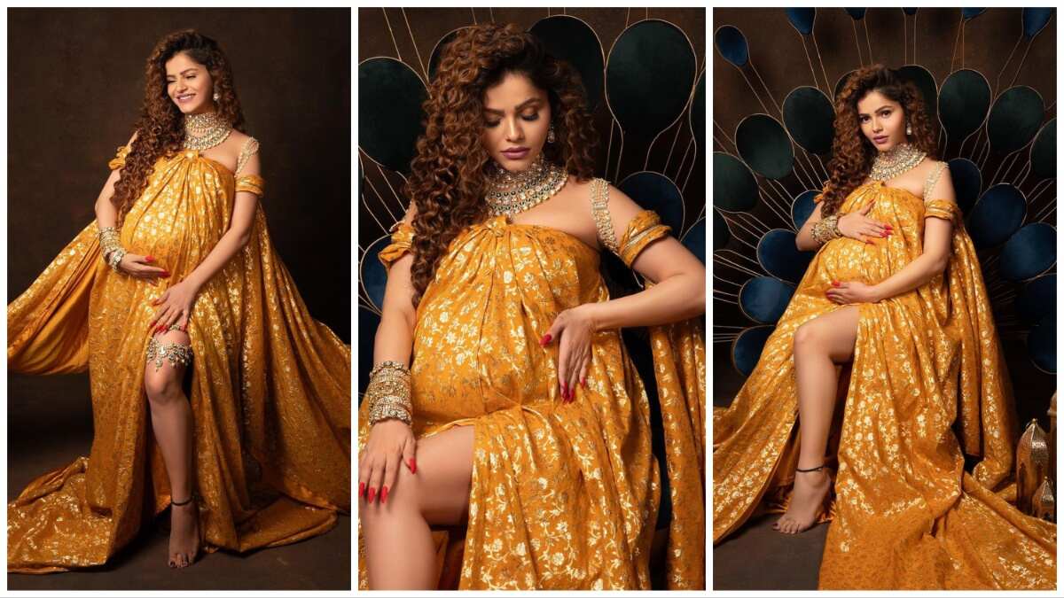 प्रेग्नेंटी रुबीना दिलैक ने हाल ही में मैटरनिटी फोटोशूट कराया है। अभिनेत्री ने इंस्टाग्राम अकाउंट पर शूट की तस्वीरें शेयर की हैं, जिसमें अभिनेत्री बेबी बंप फ्लॉन्ट करती हुई नजर आईं। फोटोज में येलो कलर की रिवीलिंग बनारसी ड्रेस में रुबीना महारानी की तरह पोज दे रही हैं। एक्ट्रेस ने चोकर और चूड़ियों के साथ अपने लुक को पूरा किया। घुंघराले बाल और बोल्ड मेकअप में रुबीना बेहद हसीन लग रही हैं।