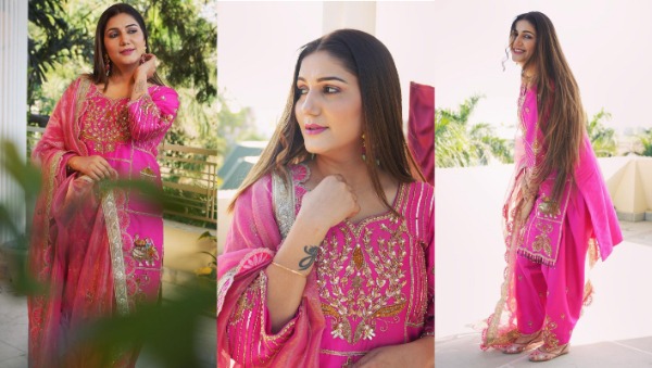 गुलाबी सूट में सपना चौधरी ने कंधे से सरकाया दुपट्टा, हैवी फिगर देख लोग भरने लगे आहे