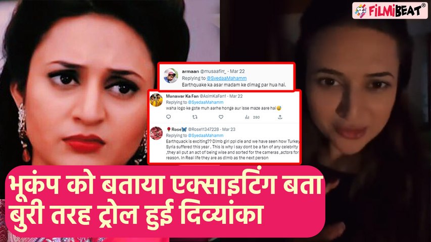 दिव्यांका ने अपने इंस्टाग्राम हैंडल पर एक वीडियो साझा किया, जिसमें वह अन्य लोगों के साथ अपनी बिल्डिंग में खड़ी नजर आ रही हैं। इस वीडियो में, 'ये है मोहब्बतें' की अभिनेत्री को वीडियो में चिल्लाते हुए देखा जा सकता है, "ठीक है, यह बहुत रोमांचक है क्योंकि मैं अपने जीवन के पहले भूकंप का अनुभव कर रही हूं, और आपको ऐसा महसूस नहीं होगा...चंडीगढ़ में गली मोहल्ला सब नीचे आ गए हैं । यह रोमांचक है, अभी के लिए, जब तक कि ज्यादा नहीं होता।" जैसे ही यह वीडियो उसकी इंस्टाग्राम स्टोरी पर आया, नेटिजन्स ने अपने ट्विटर हैंडल पर ले लिया और भूकंप के प्रति उसकी असंवेदनशील और टोन-डेफ प्रतिक्रिया के लिए उसे बाहर कर दिया।