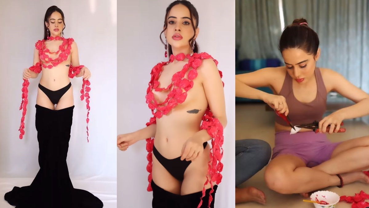 प्लास्टिक की चम्मच से दुपट्टा बनाकर उर्फी जावेद ने छिपाया जिस्म, सिर्फ अंडरवियर में वायरल हुआ वीडियो