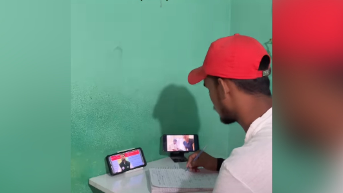 वायरल वीडियो में आप देखेंगे कि एक लड़का नोटबुक और पेन लेकर पढ़ाई कर रहा है। उसके सामने मेज पर दो मोबाइल रखे हुए हैं। एक मोबाइल में कोचिंग क्लास चल रही है और दूसरी मोबाइल में 19 मिनट वाला एमएमएस। जिसने भी इस वीडियो देखा उसके यकीन नहीं हुआ और लोगों के पास भड़कने के अलावा कोई काम नहीं था। हालांकि ये युवक क्या संदेश दे रहा है ये तो किसी से छिपा नहीं है। वीडियो के सामने आते ही लोगों के ढेरों कमेंट्स सामने आ रहे हैं। इस वीडियो पर 50 हजार से ज्यादा लाइक्स आ चुके हैं।