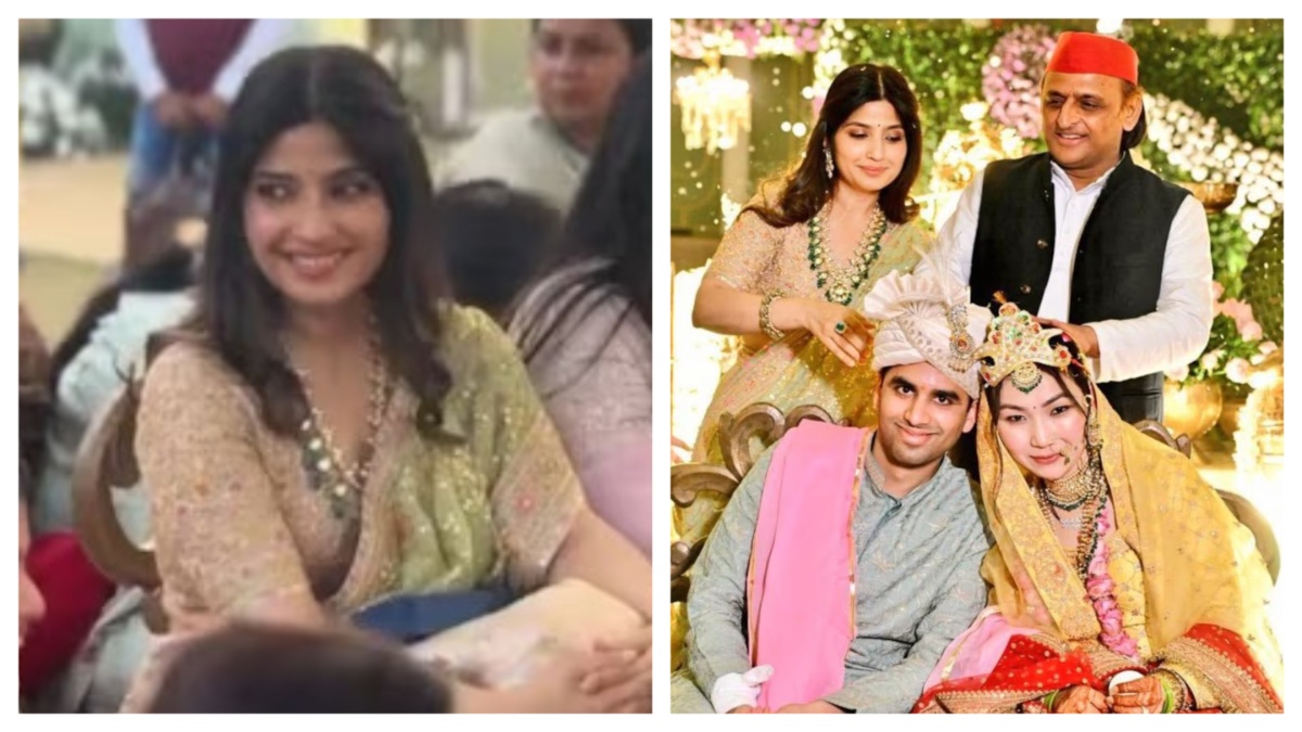 डिंपल यादव अक्सर सादे लुक में दिखती हैं, लेकिन इस शादी में उन्होंने गोल्डन रंग की खूबसूरत साड़ी पहनी। उनके बाल हल्के कर्ल में खुले हुए थे। गले में हरे रंग की ज्वैलरी थी, जो उन पर बहुत जच रही थी। उन्होंने हल्का मेकअप किया था, जिससे वह और भी प्यारी दिखीं। तस्वीरों में वह परिवार की महिलाओं के साथ बैठकर शादी का मज़ा लेती दिख रही हैं। इस शादी का एक वीडियो अखिलेश यादव ने खुद सोशल मीडिया पर डाला।