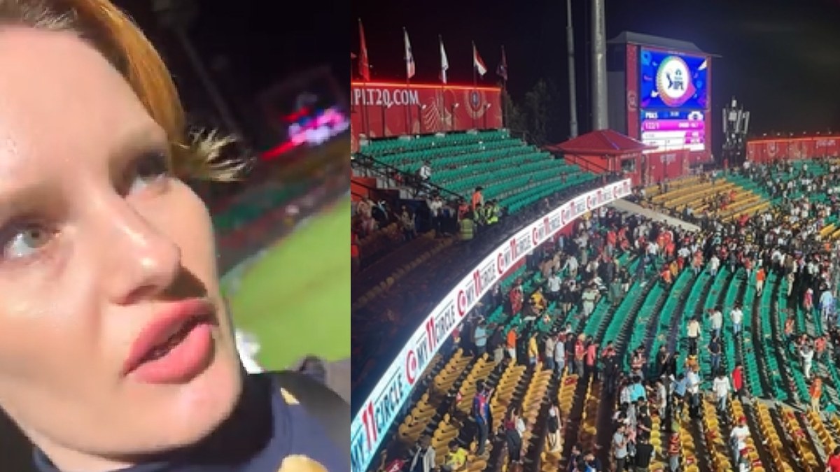 स्टेडियम को हमले के अलर्ट के बाद ब्लैकआउट कर दिया गया जिसके बाद लोग घबरा गए। एक चियरलीडर ने वीडियो शूट किया है जो कि एक्स पर सामने आया है। चियर लीडर इस वीडियो में कह रही हैं,"पूरे स्टेडियम को खेल के बीच में खाली कर दिया गया।