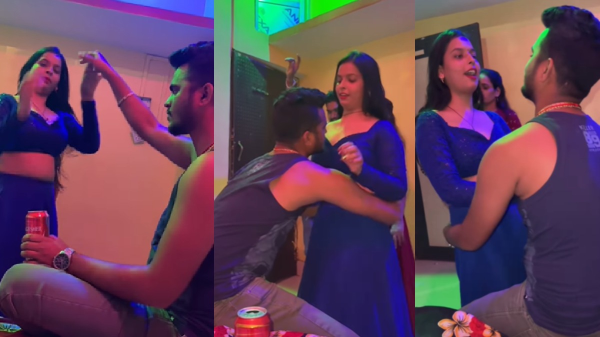 इस वीडियो में महिला डांसर को नीले रंग के कपड़ों में देखा जा सकता है। महिला ने लहंगा और ब्लाउज पहना हुआ है और भोजपुरी गाने पर डांस करती दिख रही है। इस बीच युवक लगातार बियर हाथ में लेकर उसको पकड़ने की कोशिश करता है।