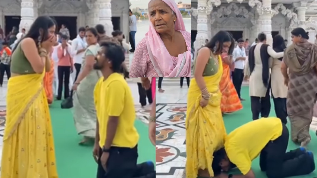 Video- पत्नी के पैरों में माथा टेकते पति पर भड़की बुजुर्ग महिला, प्रेम मंदिर में कर रहा था ये हरकत, Troll