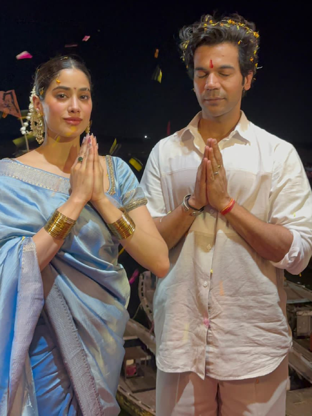 जान्हवी कपूर ने इस अवसर पर लाइट ब्लू साड़ी वेयर की थी वहीँ एक्टर राजकुमार राव ने कॉटन हाफ स्लीव शर्ट और ट्राउज़र पहना हुआ था।